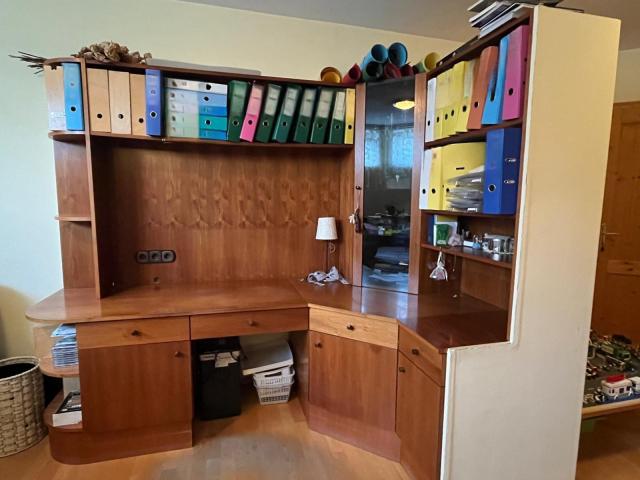 690,00 € Großer, wunderbarer Schreibtisch mit Rückwand, Glas-Eckvitrine, Mahagoni-Massiv