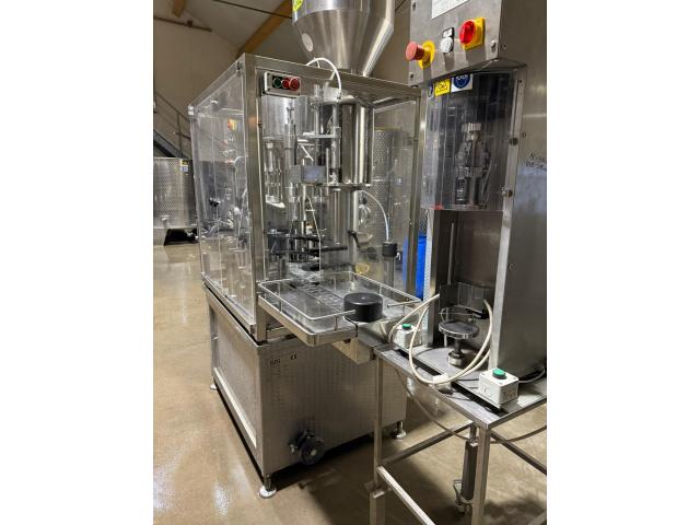 Verkaufe unsere 8-stellige Füllanlage inkl. halbautomatischem Verschließer (28x15 und 30x60). Funktioniert perfekt und ist aktuell in Betrieb. Sterne für 0.75l und 1.0l Flaschen dabei. Korker ist verbaut, wurde aber nie verwendet - gehört eingestellt etc. Füllleistung 1.000-1.200 Fl. pro Stunde.