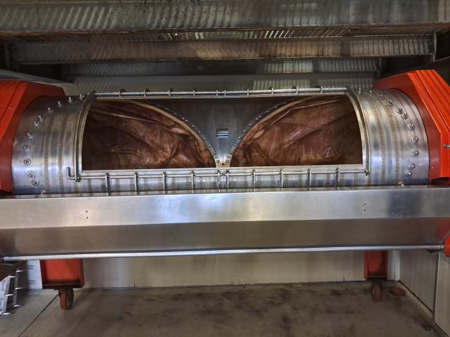 Halboffenes Presssystem, bis aktuell in Betrieb, 2023 zu Saisonende neue Pressplane. Voll funktionsfähig Verschiebbare Presswanne, neuere Elektronik, Zentrallbefüllung